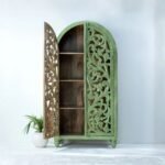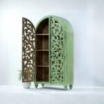 Be the first to review “Handcrafted Green Carved Wooden Wardrobe Cabinet – 2 Door Arched Almirah | 89×45×190 cm”