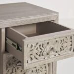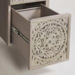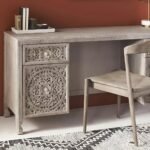 Hand-Carved Wooden Desk – Lombok Executive Desk Carving White washed Floral Carving Office Table with Storage Drawers