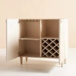 Expertly made by skilled artisans, the natural wood finish highlights the detailed hand-carving, giving each piece a unique character. Inside, the cabinet is thoughtfully designed with dedicated storage for your bar essentials, including a built-in wine rack for organized bottle display and ample space for glassware, mixers, and accessories.