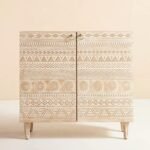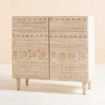 This beautifully Hand-Carved Wooden Bar Cabinet with Wine Rack elevates your entertaining space, designed to blend artistic craftsmanship with everyday functionality. Featuring intricate tribal and geometric carvings across its doors, this cabinet brings warmth, texture, and a refined global aesthetic to your home.