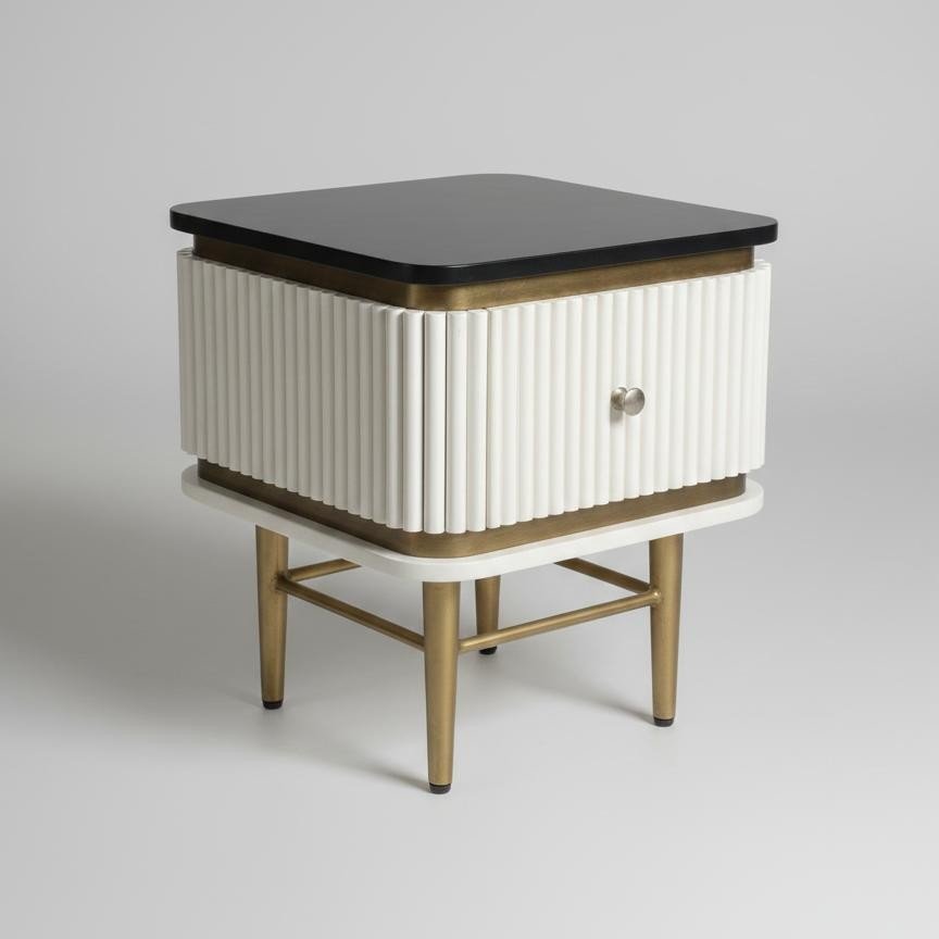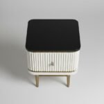 This Luxury Wooden Bedside Table with Brass Legs brings elegance and functionality to your bedroom. Designed with a refined fluted texture around the body, this piece combines traditional craftsmanship with contemporary design.