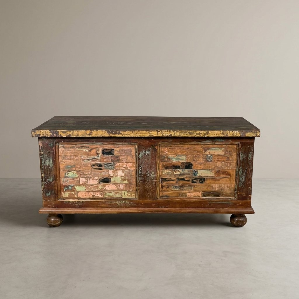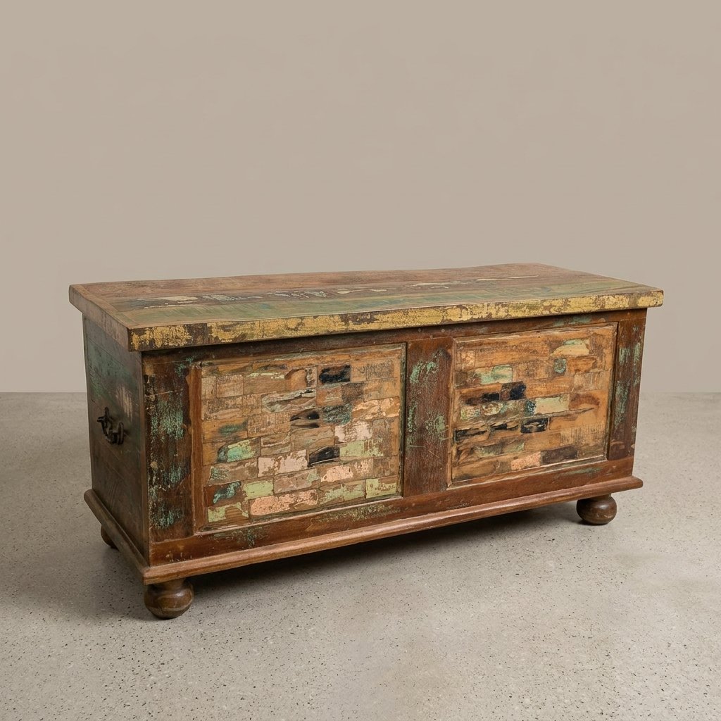 Reclaimed Wood Vintage Storage Chest | Rustic Patchwork Trunk Box