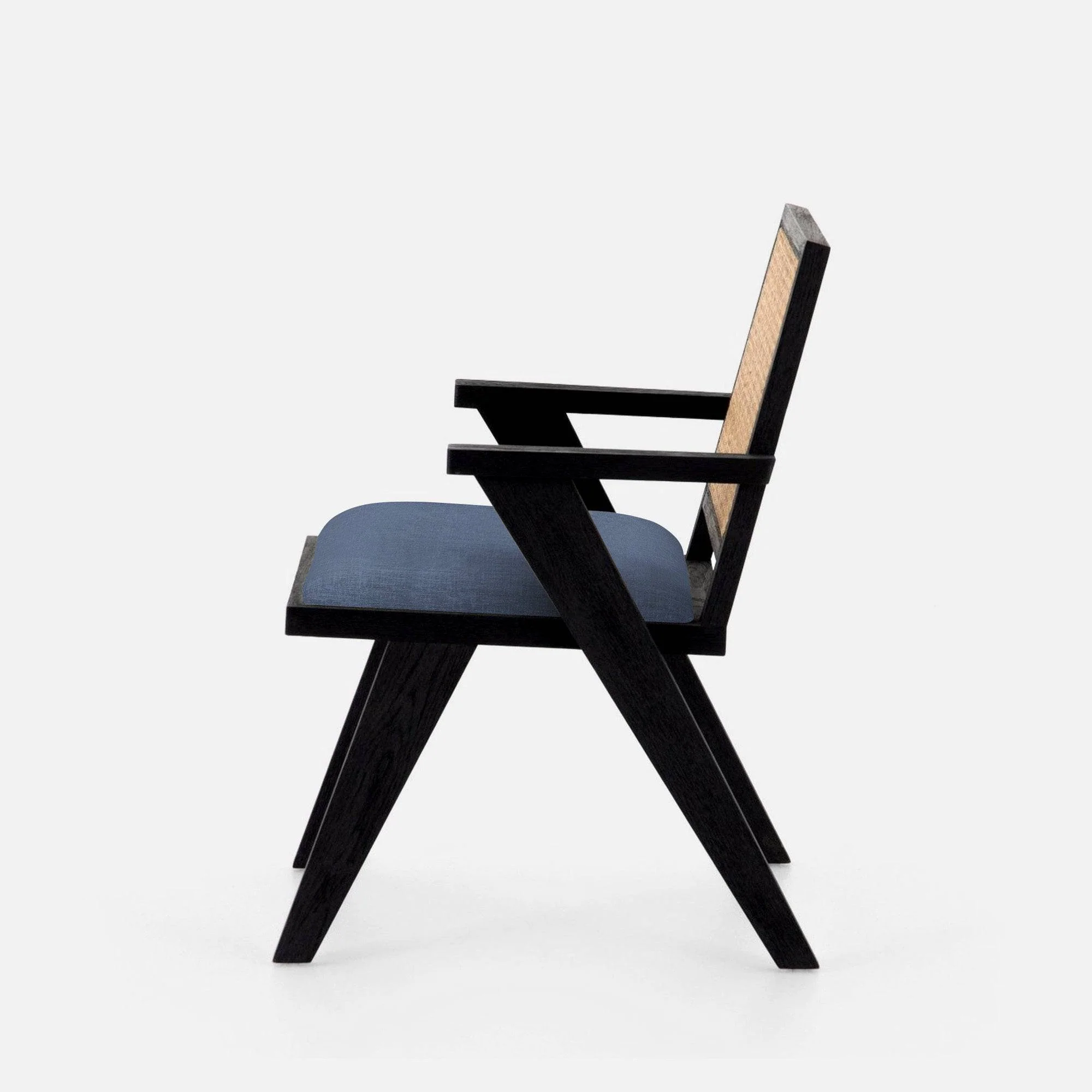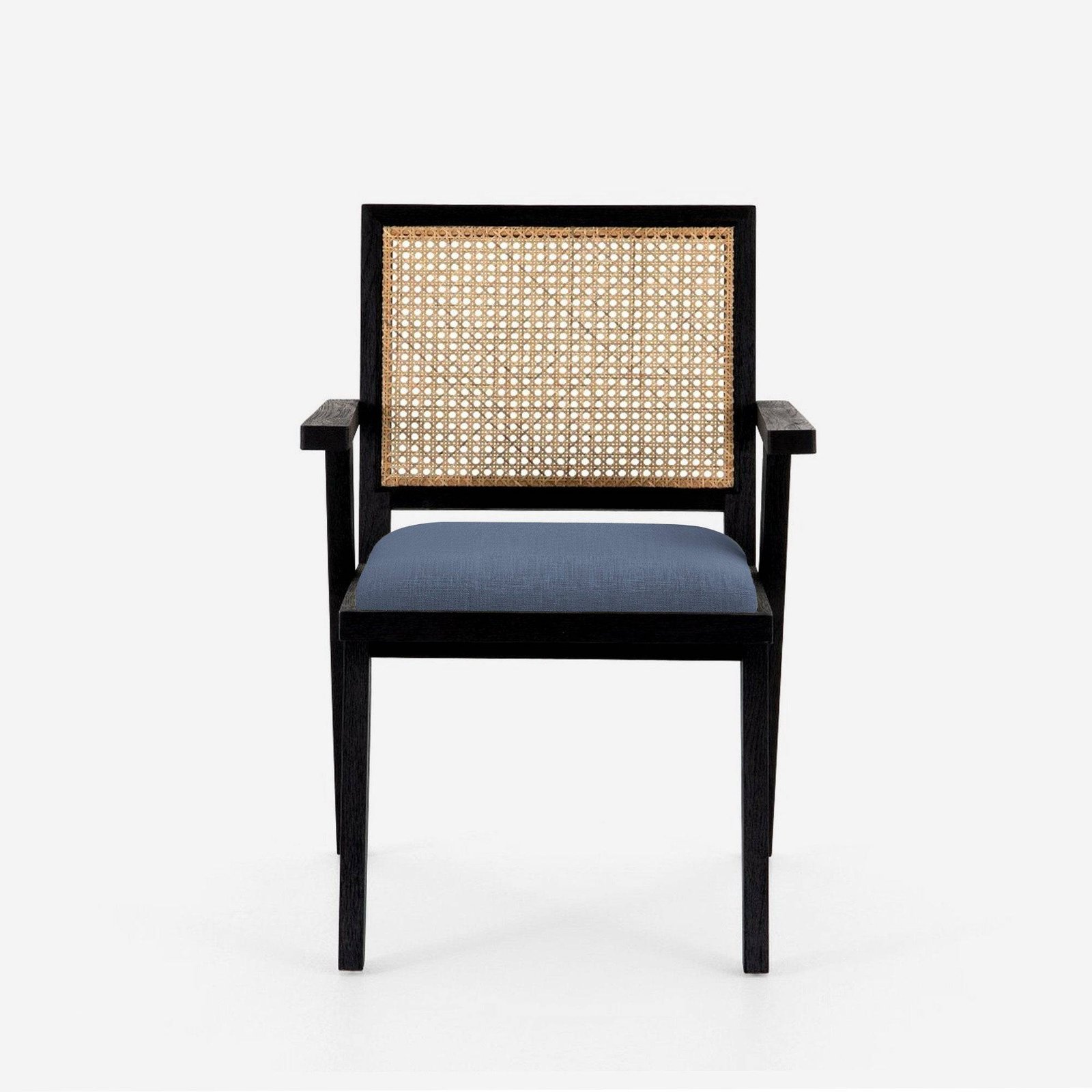 Solid Wood Dining Chair with Cane Back & Upholstered Seat | Modern Handmade Armchair