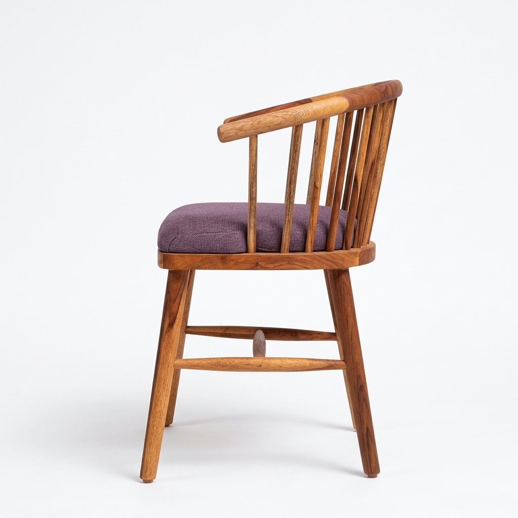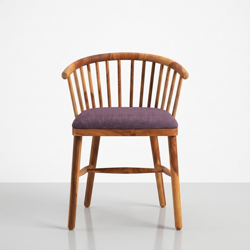 Solid Wood Dining Chair with Spindle Back | Natural Finish Wooden Chair | Upholstered Seat